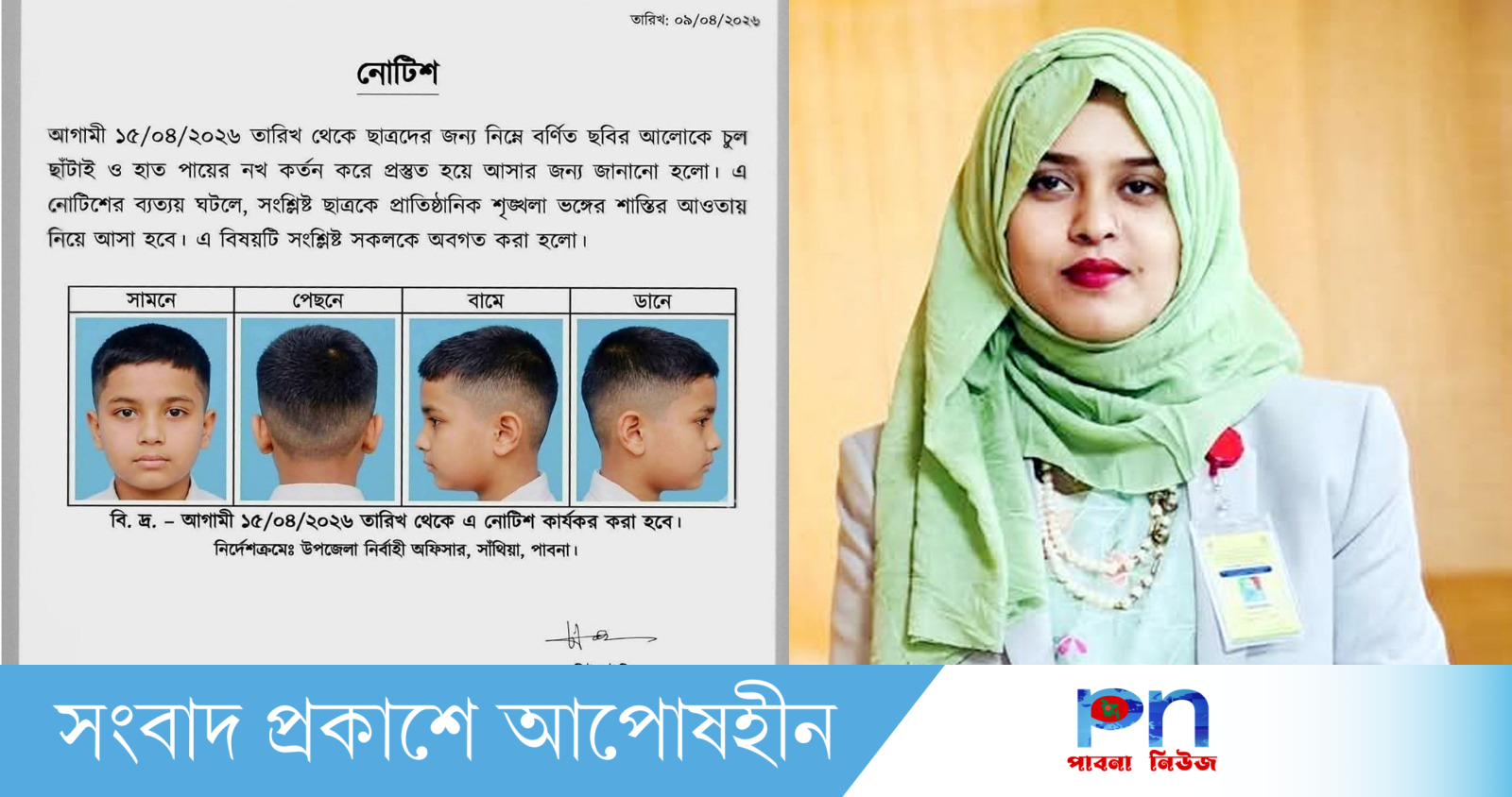 জানা যায়, গত (০৯ এপ্রিল) বৃহস্পতিবার সাঁথিয়ায় উপজেলা পরিষদ উচ্চ বিদ্যালয়ে নির্ধারিত মডেলের বাইরে চুল কাটলে শিক্ষার্থীদের বিরুদ্ধে কঠোর শাস্তিমূলক ব্যবস্থা নেওয়া হবে উল্লেখ করে বিদ্যালয়ের বিভিন্ন জায়গায় নোটিশ টাঙিয়ে দেয় কর্তৃপক্ষ। ওই নোটিশে স্পষ্ট উল্লেখ করা হয়, আগামী ১৫ এপ্রিল থেকে শিক্ষার্থীদের নোটিশে প্রদর্শিত ছবির আদলে চুল ছেঁটে এবং হাত-পায়ের নখ কেটে বিদ্যালয়ে আসতে হবে। নোটিশে চারদিক থেকে তোলা একটি শিশুর চুলের কাটিংয়ের ছবি যুক্ত করে দেওয়া হয়েছে, যা অনেকটা 'আর্মি কাট' সদৃশ।